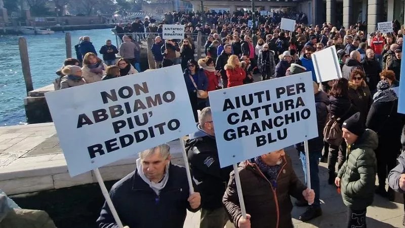 [Ed. Note: Blue crabs are invasive in the Mediterranean and have reached the lagoon of Venice in recent years, creating a crisis for fisherman. They damage fishers’ nets and catches, as well as have negative impacts on native ecosystems, especially on organisms living close to the seafloor.]
