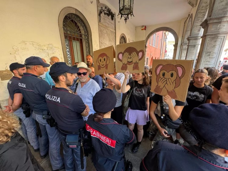“Buffone” “Clown” “Brugnaro, stop talking”. While the mayor was aggressively defending his actions and his team, the 500 citizens outside continued to shout for his resignation.